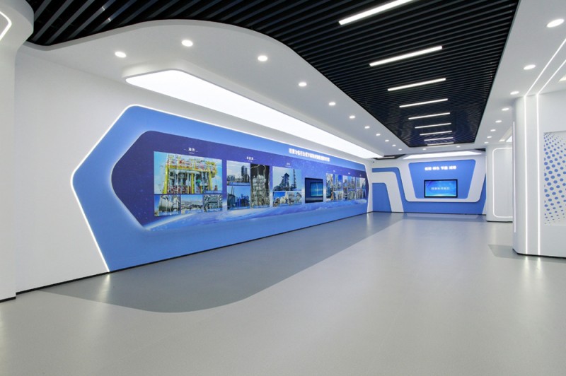 此次企業展廳設計向客戶展示企業發展過程、企業文化、企業產品。我們根據企業特點和行業特性,提煉出一些或者一個符號并結合色彩的運用貫穿整個展廳,同時利用一些先進的技術設備體現展廳的時代感和科技感,塑造和傳播企業形象。