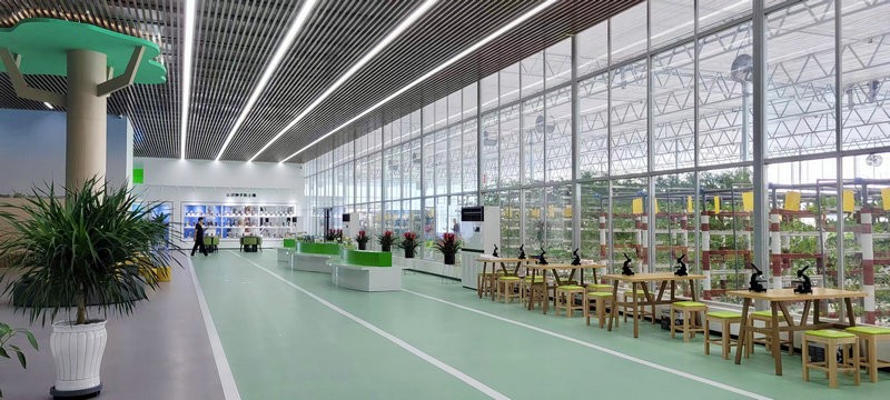 在突出數字農業展廳科技氛圍的基礎上,也要凸顯農業的生態和諧之美。所以,在色彩、形式、功能上合理搭配,用場景還原的方式營造真實的農業場景,讓參觀者身臨其境去體驗。用代表綠色生態的配色來升華成展廳的主色調,用數字展示技術展示農業內容。